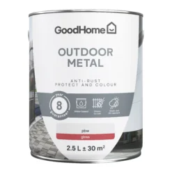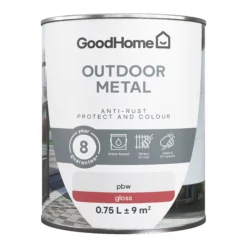 GoodHome Outdoor White Gloss Exterior Metal Paint, 2.5L Tin