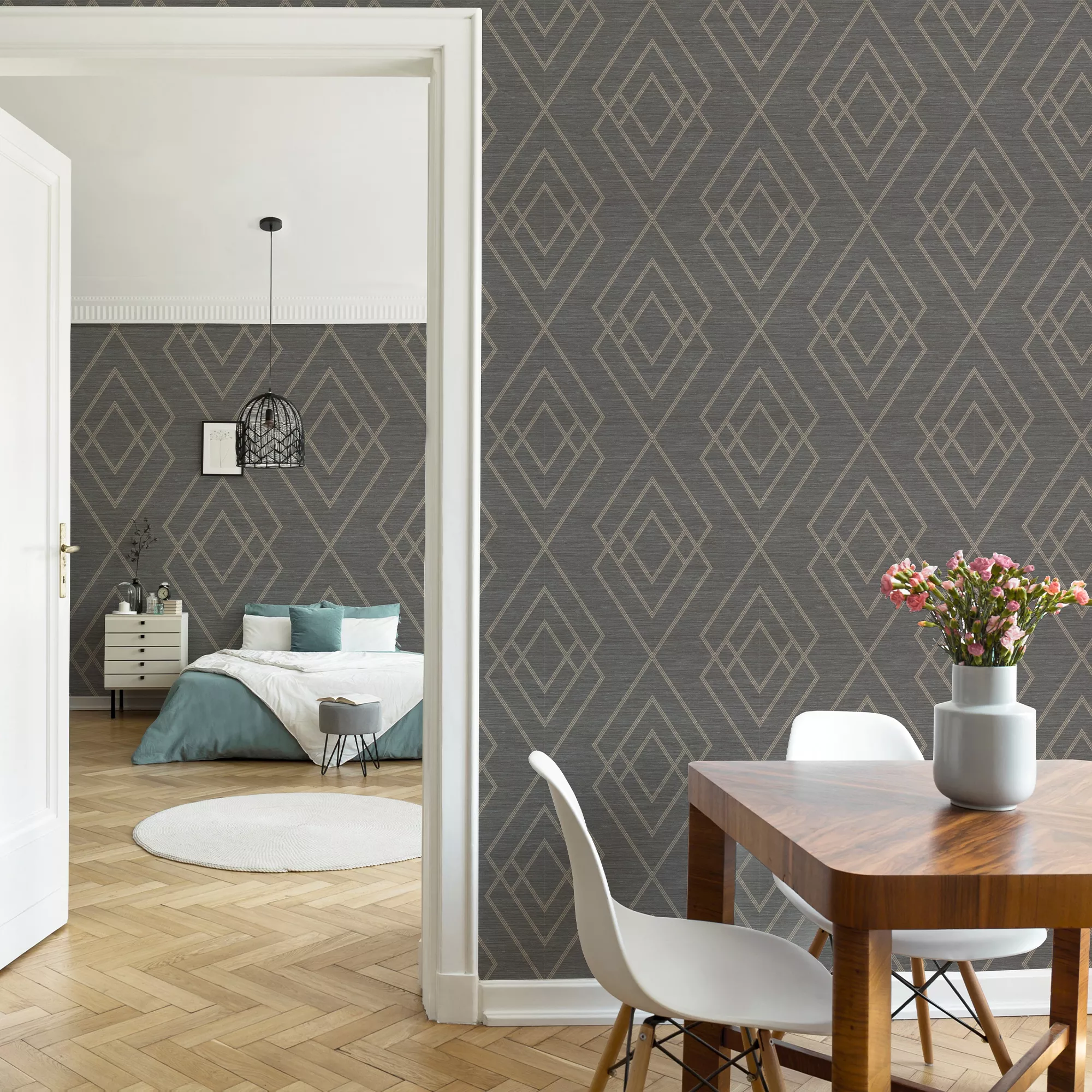 This GoodHome patterned wallpaper looks amazing on a feature wall, giving a fresh new feel to any space.