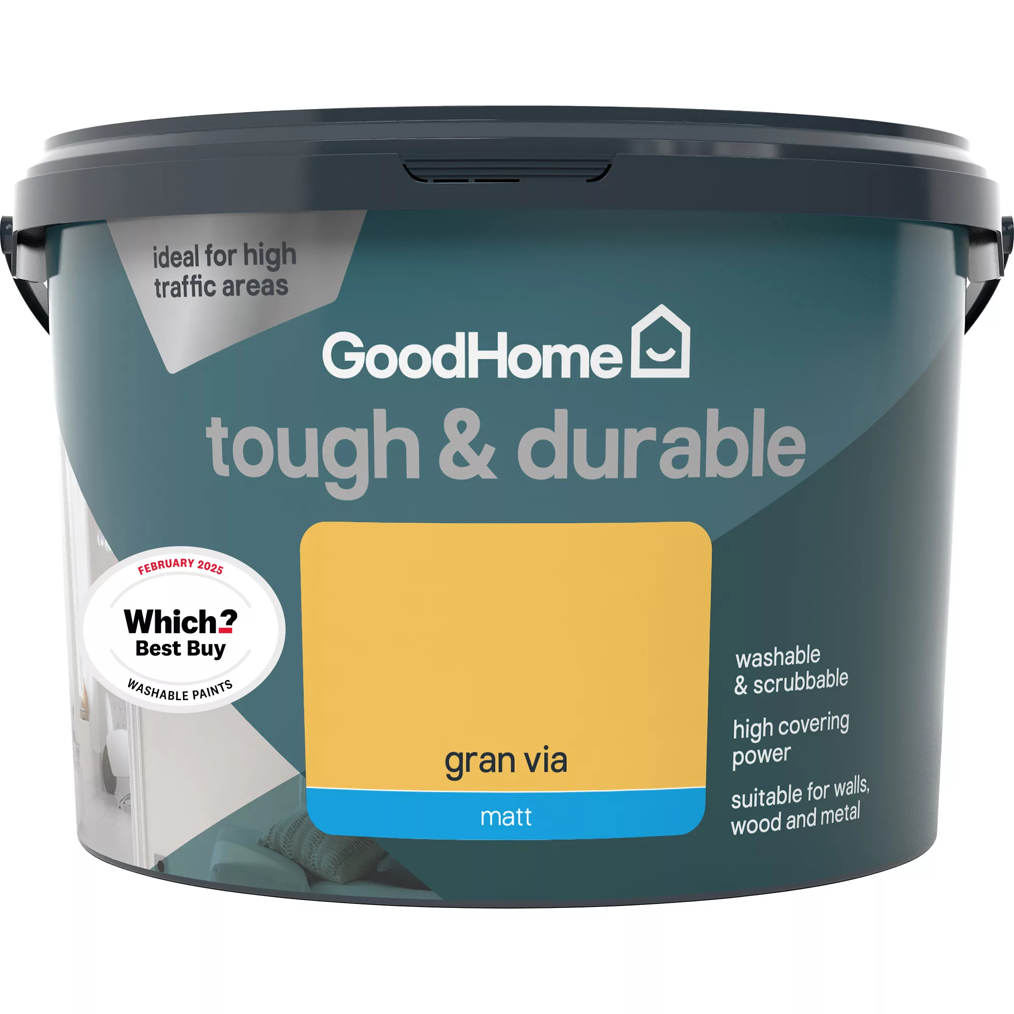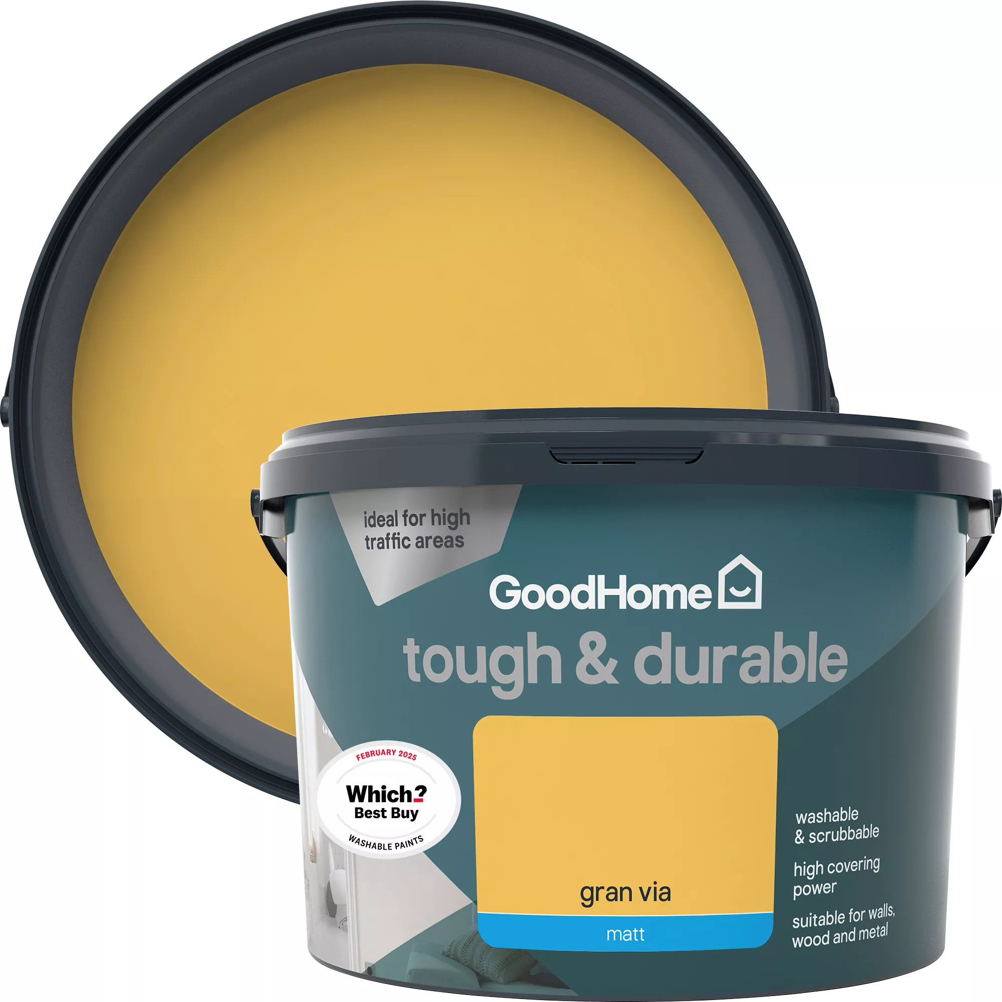 GoodHome walls and ceilings durable paint is suitable for walls, wood and metal with our toughest formulation and excellent covering power. It is extremely hard wearing so is ideal for hallways, stairwells and children’s bedrooms.