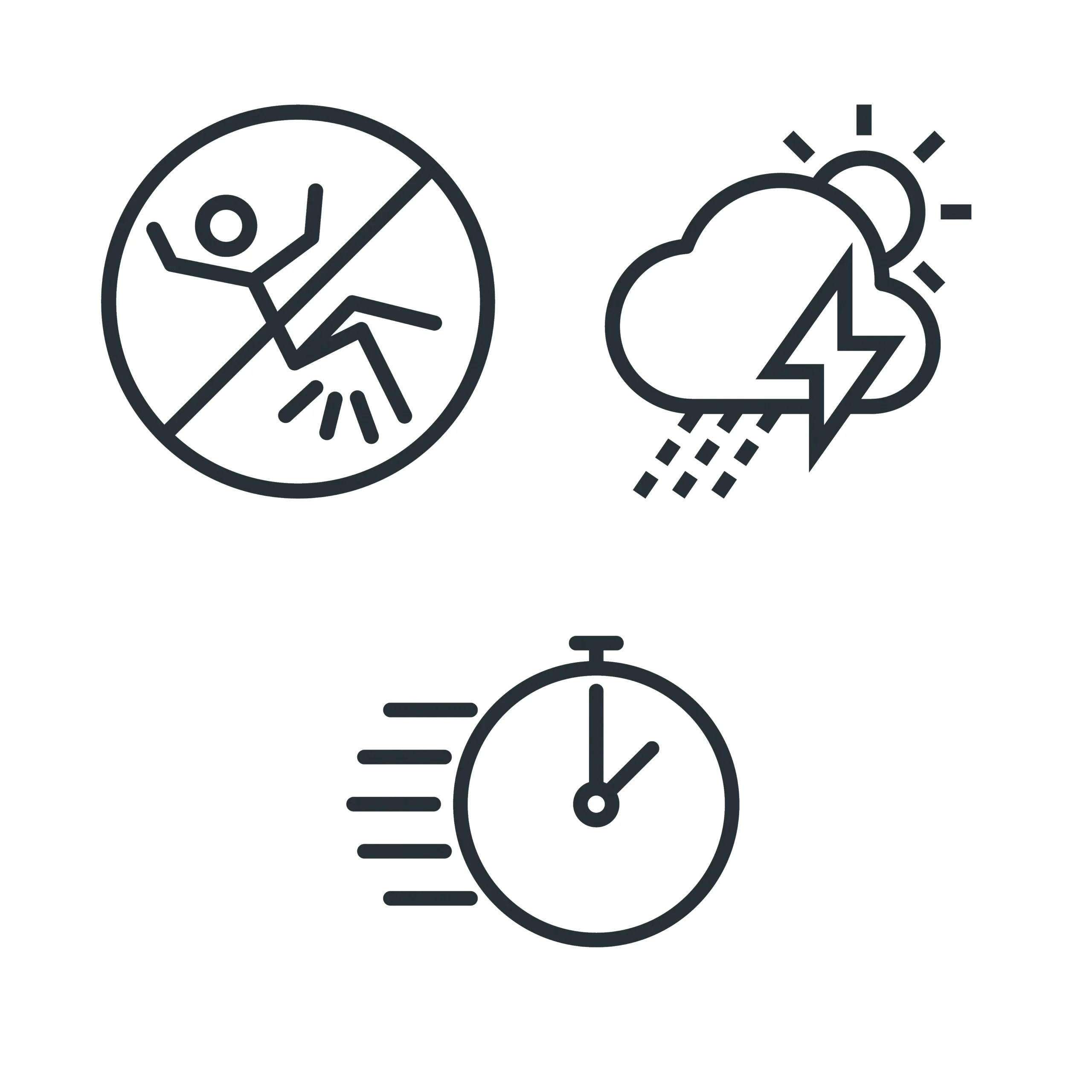 - Weather-resistant, Resistant to ultraviolet, slipping & water