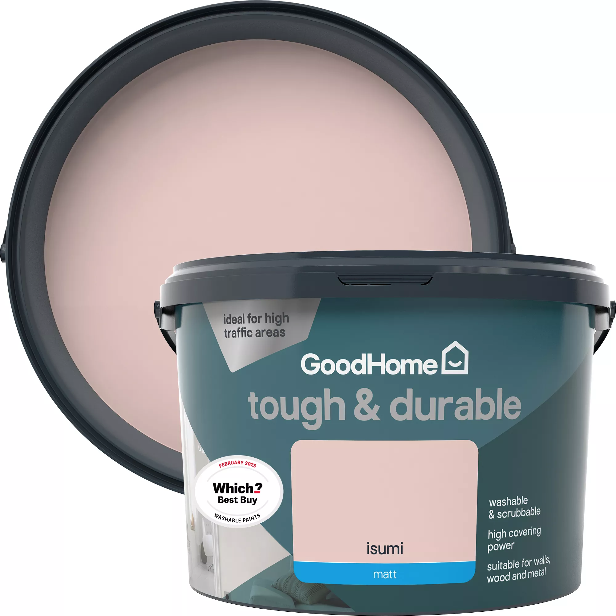 - This GoodHome Tough & Durable matt paint has a stain resistant finish and is extremely hard wearing for longer lasting colour. It is washable, scrubbable and repels liquids so splashes can be wiped off with ease, keeping your painted surfaces looking new for longer.