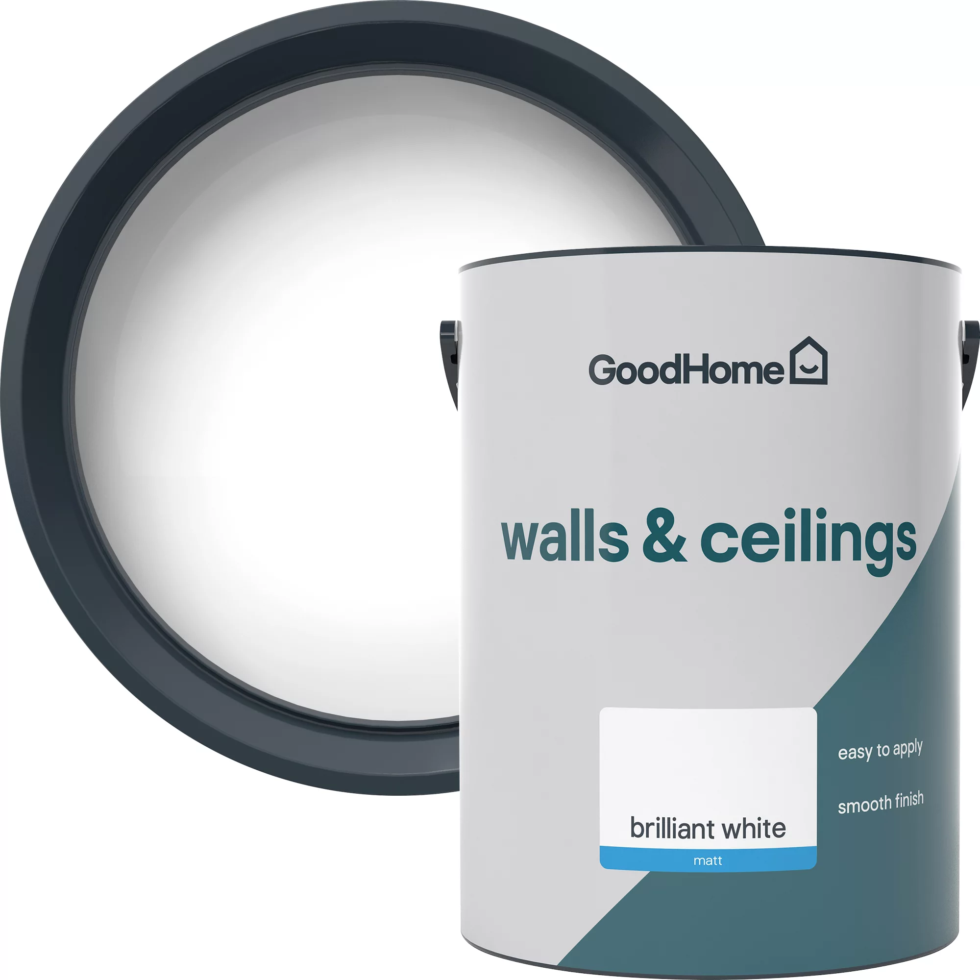 A reliable GoodHome interior vinyl matt emulsion paint that is suitable for use on wall & ceiling, making it a great choice to give your home a refresh. Brilliant white is a wonderful shade of white that will add a contemporary feel to your design. The paint is best used as a topcoat on plaster and wood. Ensured to provide a long-lasting vinyl matt finish, this emulsion paint achieves a beautiful look, without compromising on quality. This 5L tub will cover up to 12 m² on average. For maximum results, apply using a brush or roller. GoodHome Walls & Ceilings ensures a rich depth of colour after just 2 coats and with its quick drying formula, it can be recoated after 2-4 hours. Made with protective technology, this paint is resistant to water, allowing you to free yourself from the worries of everyday damage to your new room. As well as looking brilliant, this paint is safe for use in your home. It contains minimal VOCs and it has low odour levels, making it a safe choice for you and your environment.