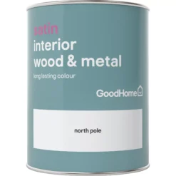 GoodHome North Pole Satin Metal & Wood Paint, 750ml
